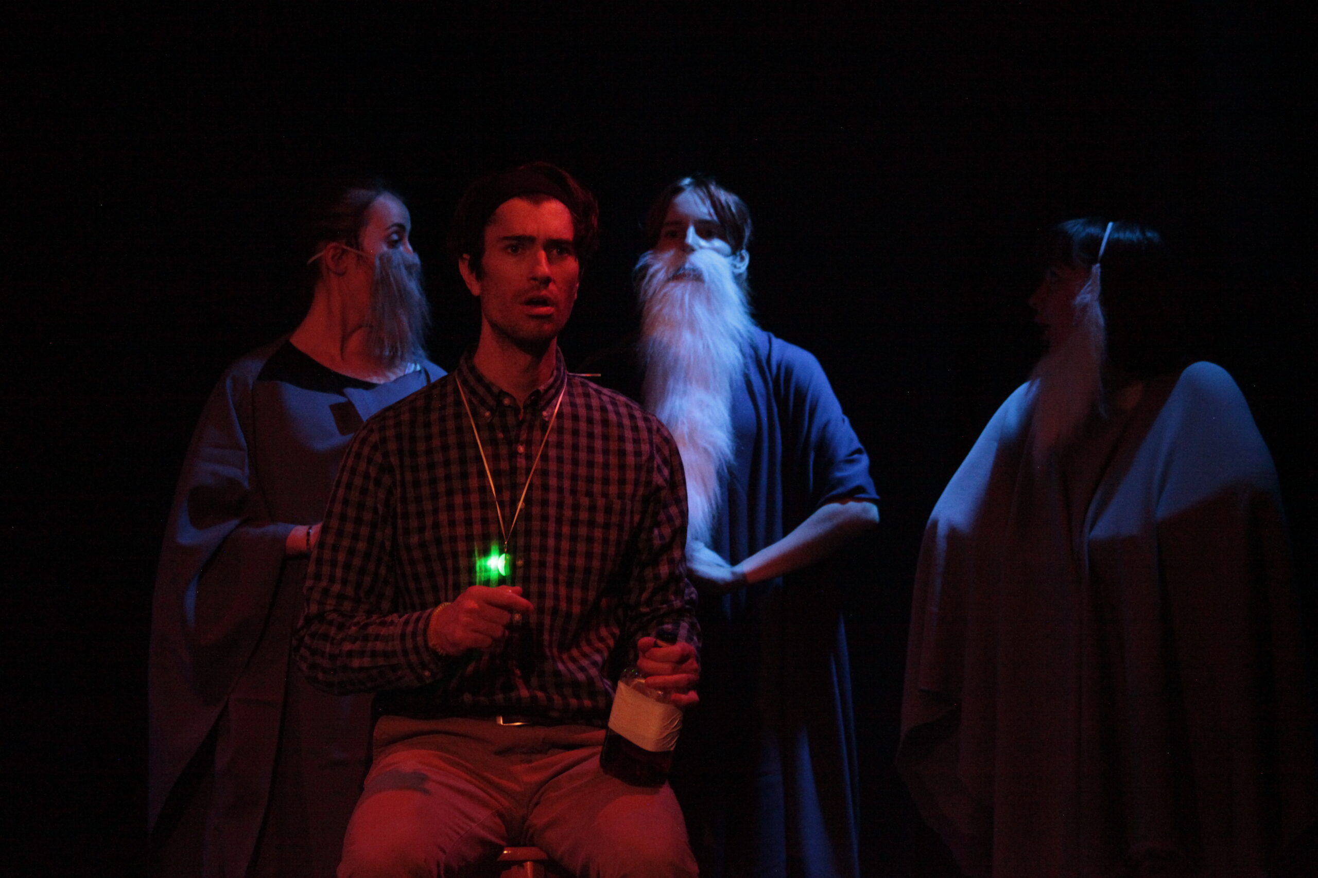 An experimental show and the third production of The Greenhouse Ensemble. Three people sit in an imaginary waiting room while their minds wander into new realities. The first collaboration between The Greenhouse Ensemble and James Meneses mixing surrealistic dialogue, modern dance, and performance art. Starring Keegan McDonald, Reanna Armellino, Mary Rawlins, and James Meneses. Directed by Spencer Scott. Set Design by Hazen Cuyler.